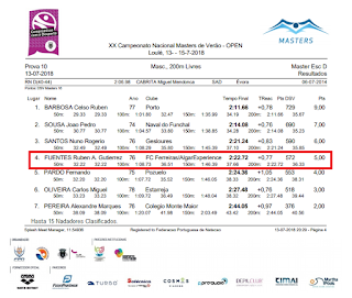 Como resumen final, dos cuartos puestos, y me voy sin medallas en mi 7º participación en los Campeonatos de Portugal Máster de Verano, donde hasta ahora había obtenido 13 medallas:
